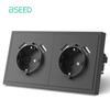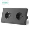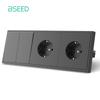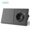 BSEED Mechanical 1/2/Gang Wall Light Switch 1Way With EU Sockets Power USB Power Outlets Plastic Panel No Led Lights Gray Series