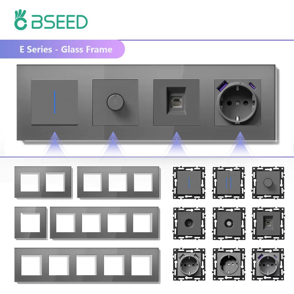 BSEED Wall Light Switches TV/ST/CAT6 Internet Computer Sockets Dimmer Fan Controller EU Wall USB Sockets DIY Parts Free Combine