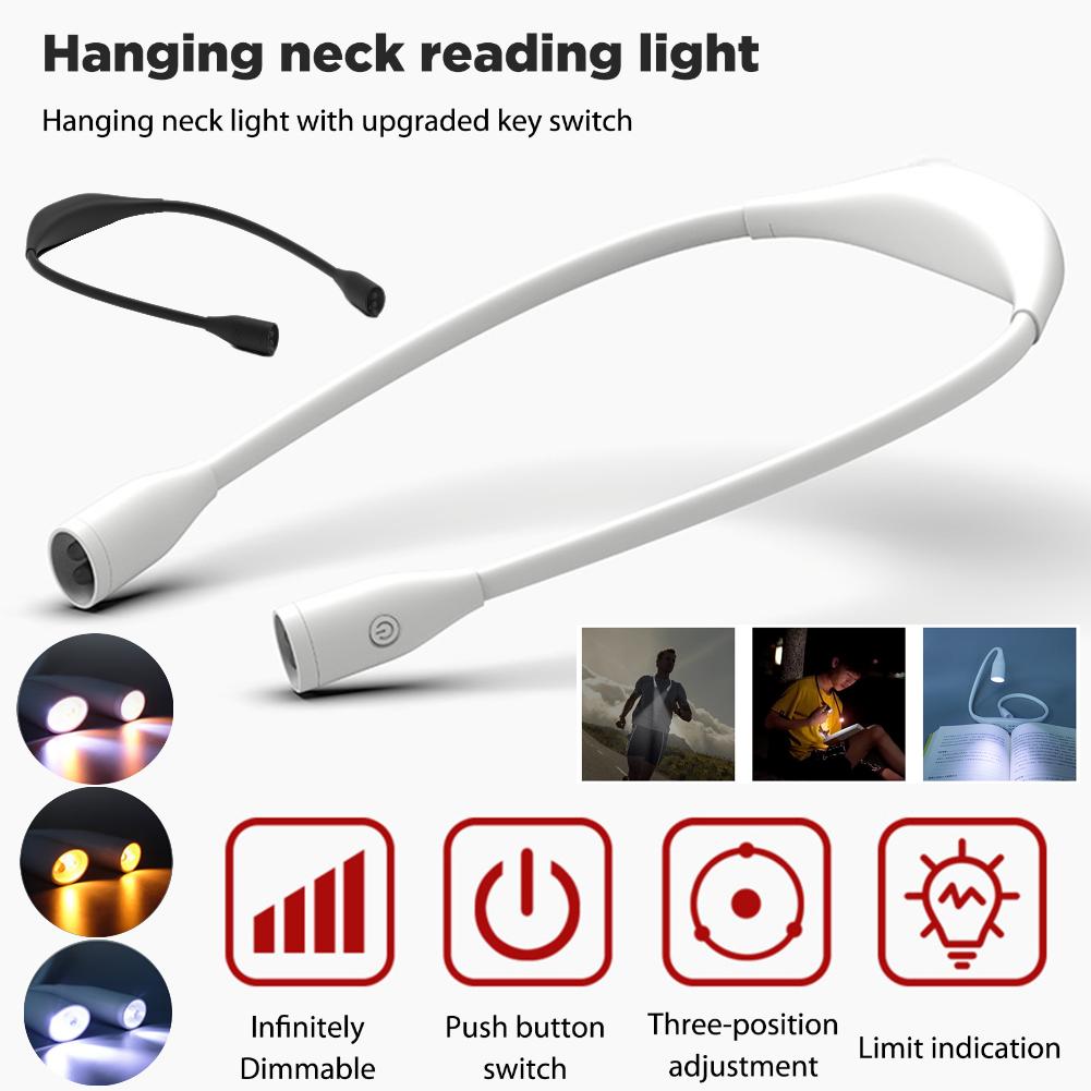 LED Book Light USB Rechargeable Hanging Neck Lights Reading Table Lamps for Night Sports Hands-Free Stepless Dimming Flashlight
