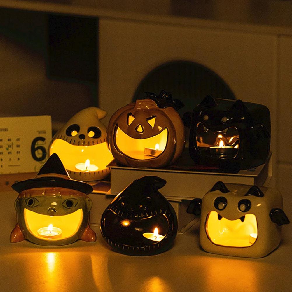 Candle Lights Holder Kawaii Ceramic Ghost Candlestick Halloween Scary Atmosphere Ornaments Party Desktop Decoration Props Gift
