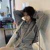 Hooded Striped Lazy Short Jacket and Sweatshirt for Women In Autumn Korean Style Students Loose and Versatile Long-sleeved Top