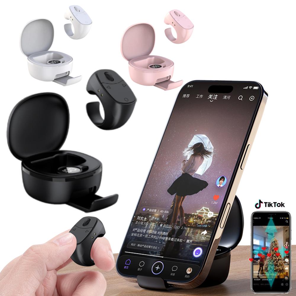 2. Stable Bluetooth-Compatible 5. 3 Connection:Enjoy seamless wireless control with the scrolling ring's advanced Bluetooth-Compatible 5.3 technology, offering a stable connection up to 10 meters. Pair effortlessly with your devices, and monitor real-time battery status on the digital display. The hidden phone stand adds extra convenience for hands-free viewing.