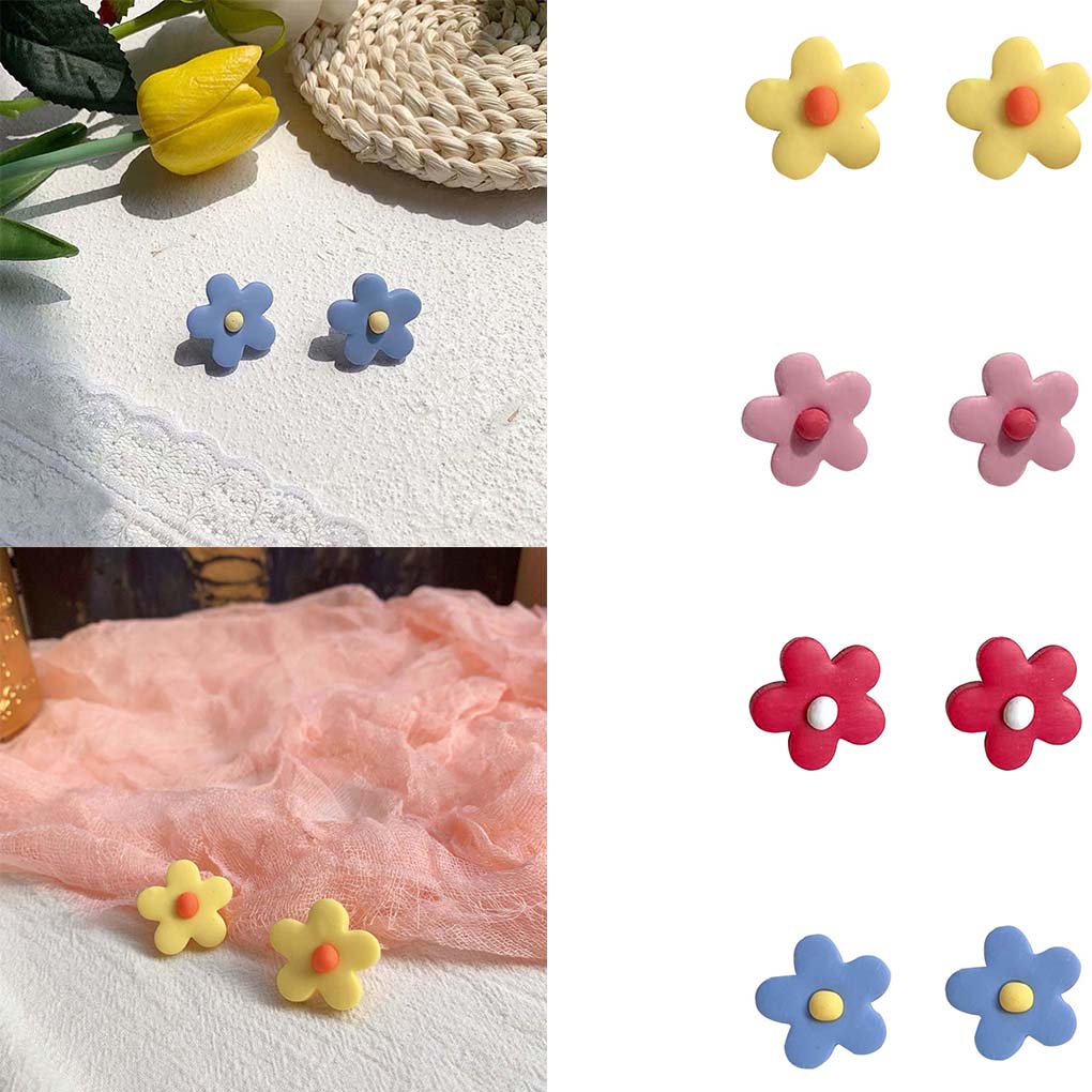 1 Pairs Women Pottery Earrings Fresh Girls Ear Clip Pin Alloy Stud Jewelry Holiday Gift