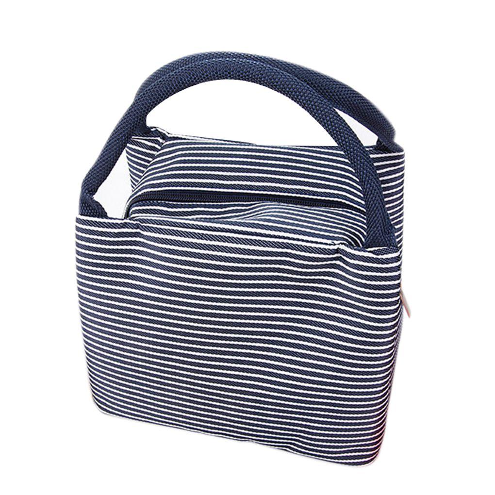 Womens Stripe Thermal Lunch Box Cooler Bag Insulated Picnic Handbag Food Bag