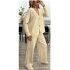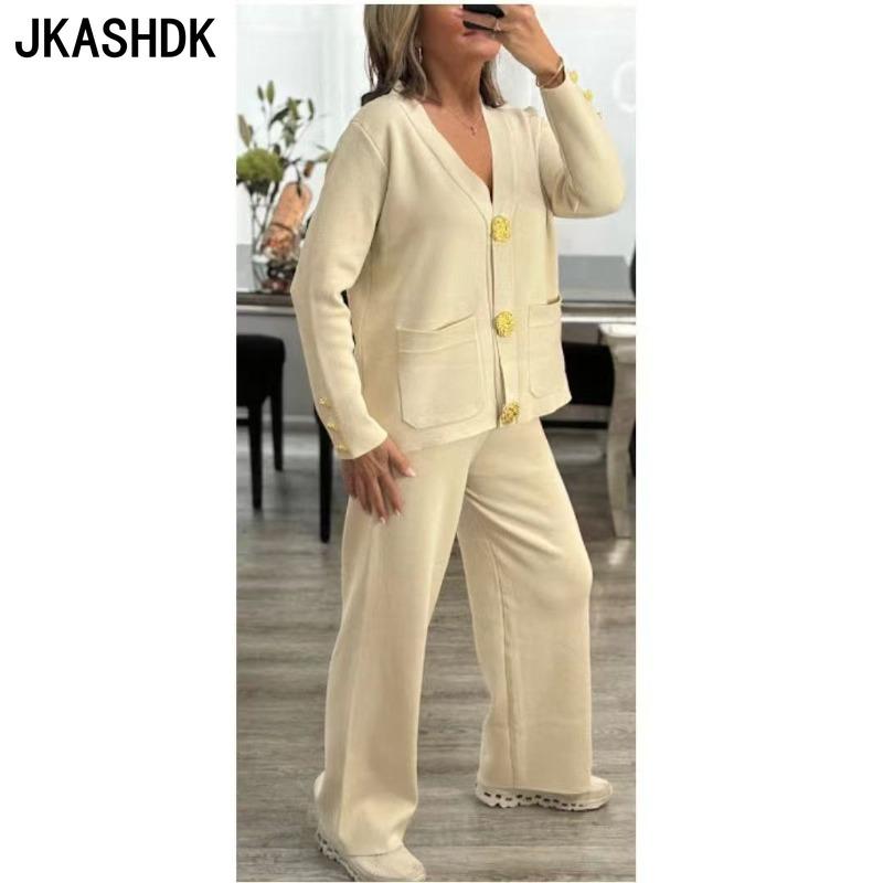 JKASHDK Women's Fashion Casual Spring Autumn Solid Color Print Long Sleeve V-Neck Trousers Pants Suits