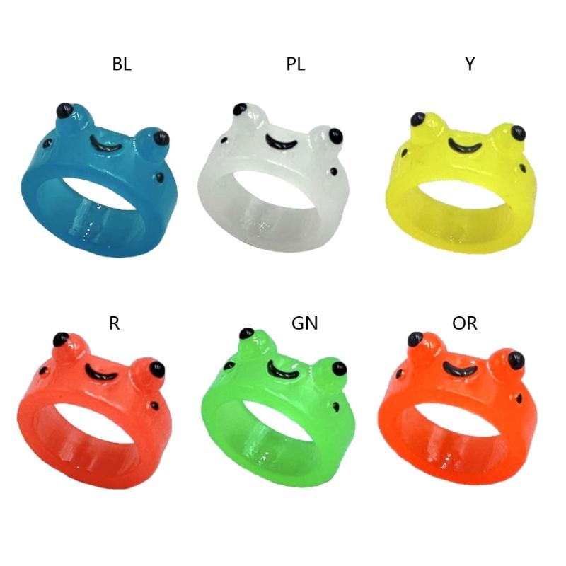 Cute Luminous Frog Resin Ring Colorful Novel Funny Animal Cartoon Finger Ring Glow In The Dark Aesthetic Rings for Girls