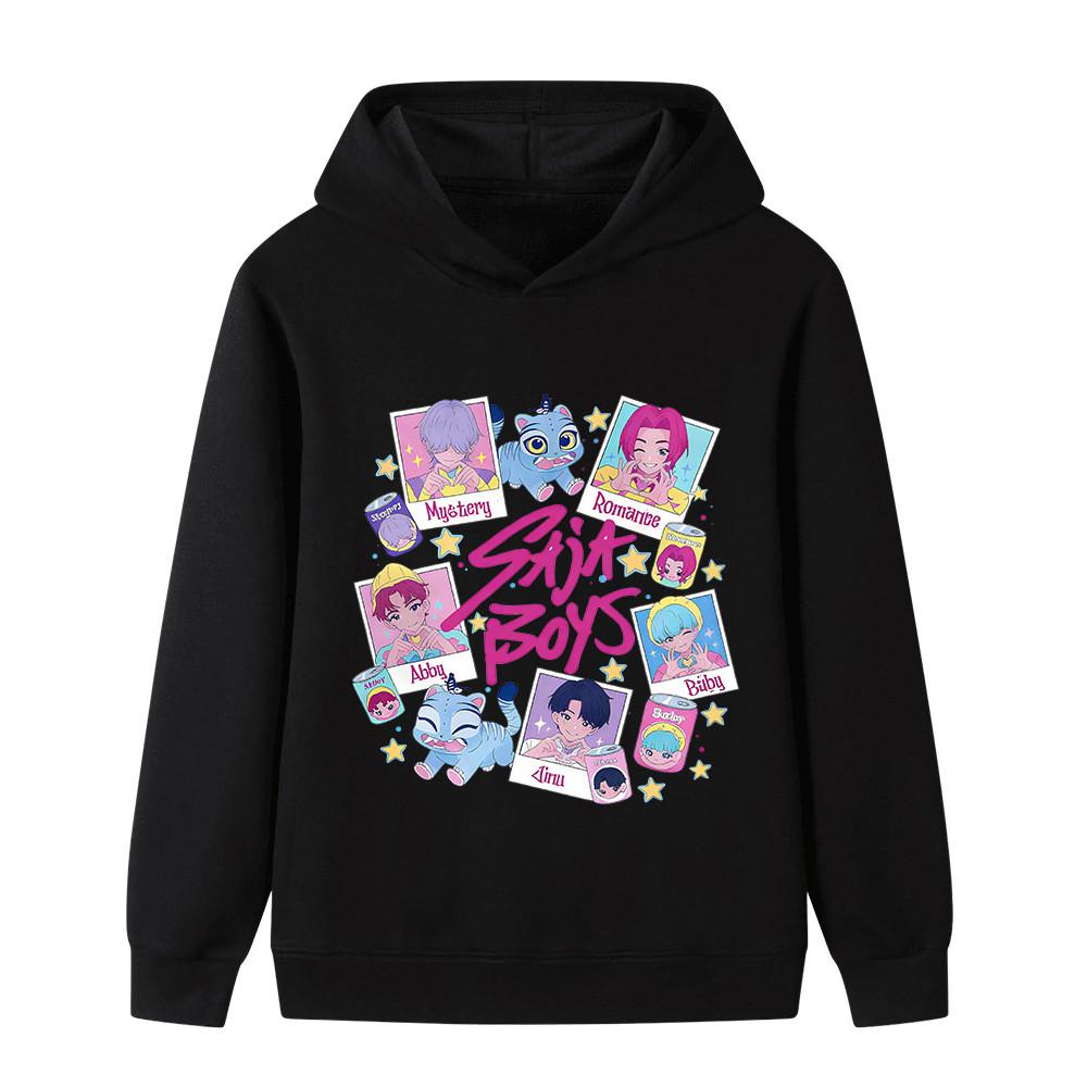 B1206 Kids Boys Girls Sajaboys Kpop Rumi Zoey Mira Print Long Sleeves Hoodie