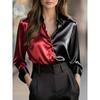 Spot 2025 New Elegant and Fashionable Double-Colored Lapel Button-Down Shirt for Women