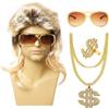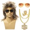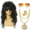 80s Disco Wig Costume Accessories Rocker Wig Set Glasses Necklace Hippie Costume Set Curly Rock Wig for Halloween Party