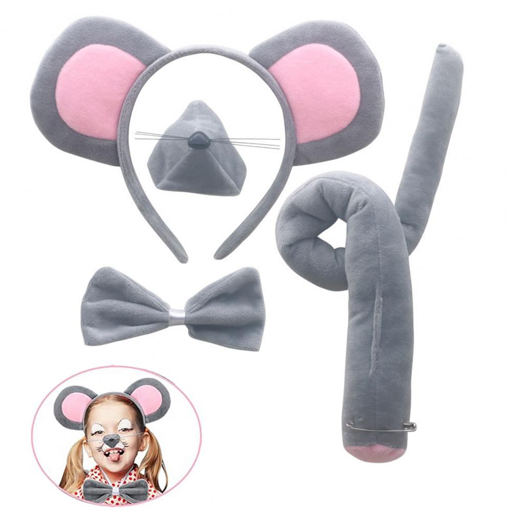 Children Mouse Costume Accessories Mouse Ears Headband Tail Mouse Costume Set for Halloween Christmas Parties for Adults