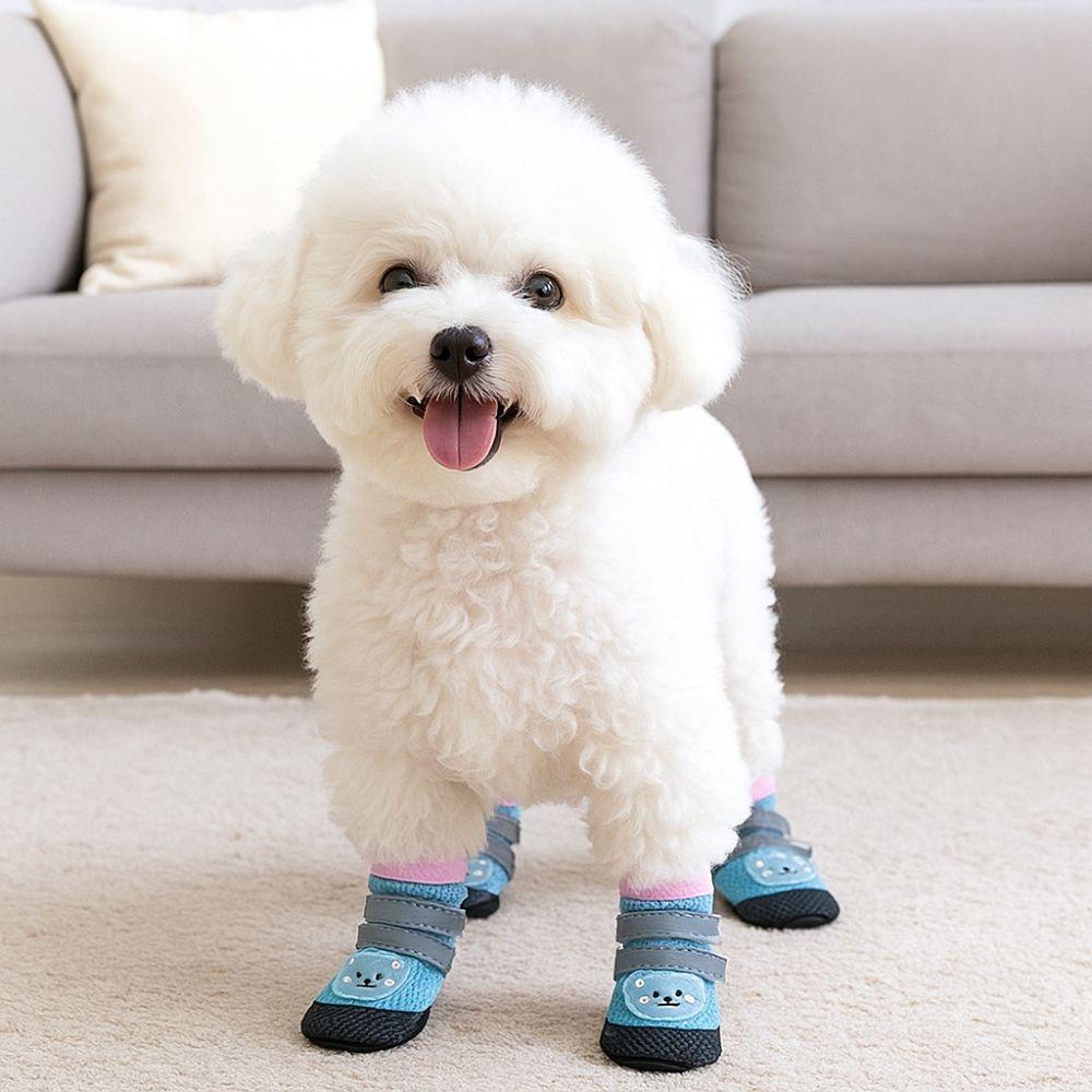 4Pcs/Set Breathable Dog Mesh Shoes Reflective Wear-resistant Anti-Slip Dog Boots Adjustable Dog Paw Protectors for Cats and Dogs