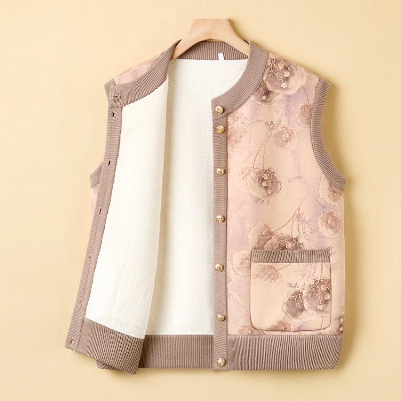 Autumn and Winter Thickened Vest Women's Plus Velvet Printed Vest Jacket