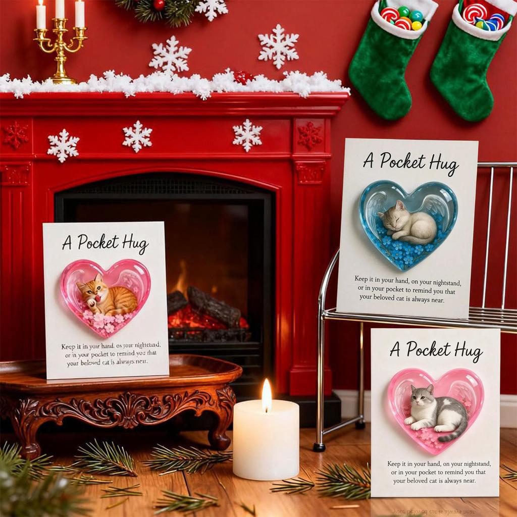 Cat Souvenir Heart Shape Card Ornament Collection Cat Motivational Cards For Women Girls Family Calming Sympathy Encouragement
