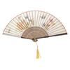 Vintage Chinese Cheongsams Folding Fan with Butterfly Flower Pattern Wood and Cotton Linen Handheld Fan with Tassels