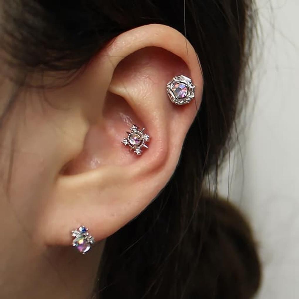 Women's Cubic 3-Piece Inner Conch Earrings Set
