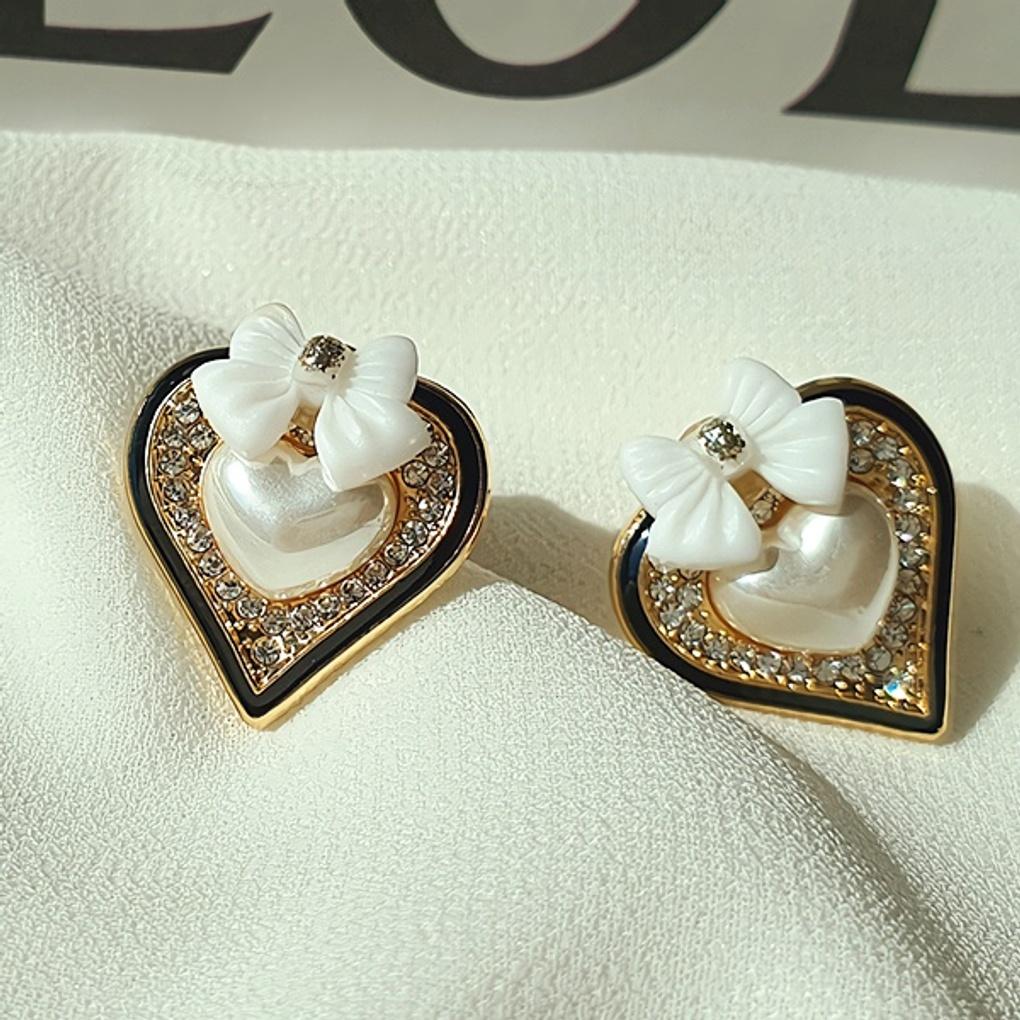 Women's Titanium Needle Ribbon Black Heart Earrings