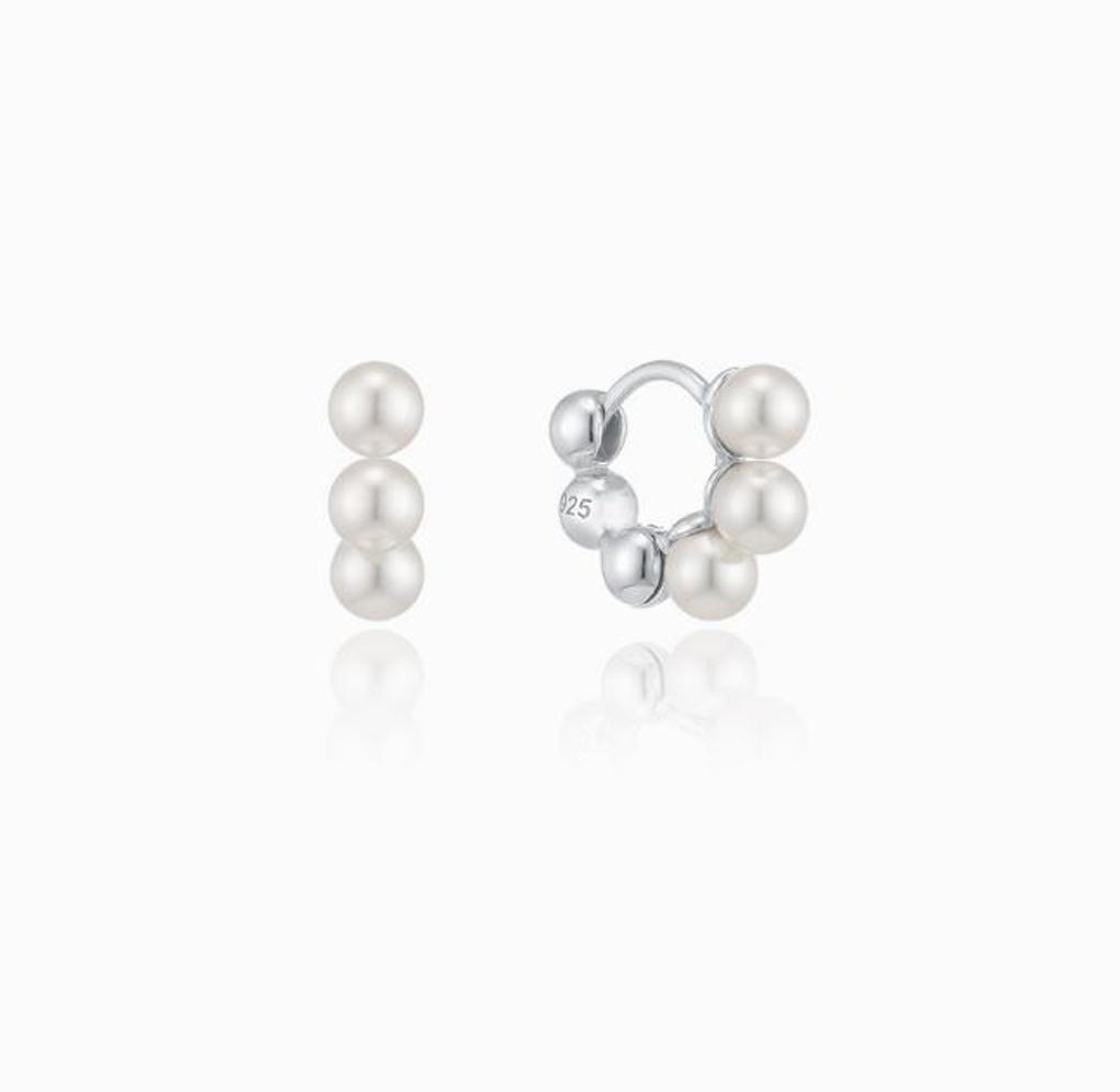 [Silver 925] Cream White Pearl Ball One-Touch Earrings (S) LLES25245S