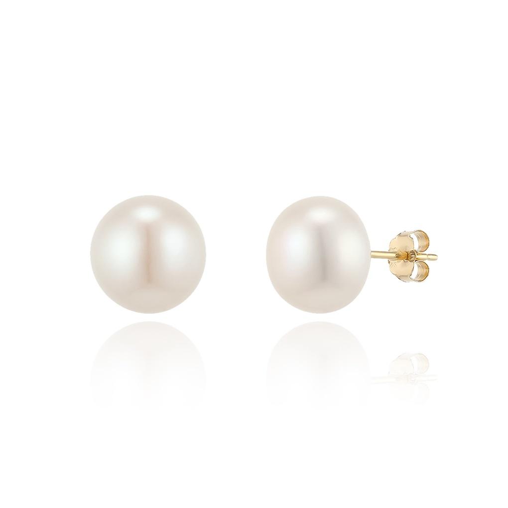 LLOYD Button Freshwater Pearl 9mm 14k Gold Earrings LPFL4E09G
