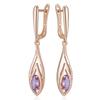 Shiny Purple Natural Zircon Long Dangle Earrings For Women Rose Gold Color Vintage Ethnic Bride Daily Fine Jewelry