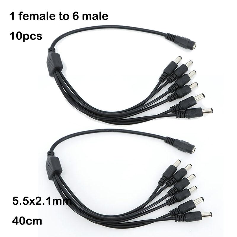 10pcs Wholesale 40cm DC 1 Female To 6 Way Male Splitter Power Plug Extension Cable 5.5mm*2.1mm Connector 12V Supply Wire Cord