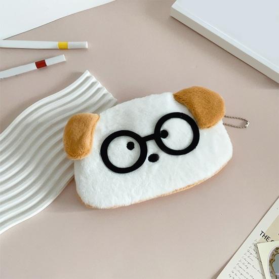 Yousheng Cute Animal Pen Bag Kids Plush Cat Dog Pencil Pouch Stuffed Animal Wearing Glasses Zippered Stationery Bag for School Students Girls And Boys