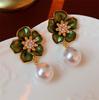 Fashion Camellia Flower Imitation Pearl Earring For Women Luxury Jewelry Accessories