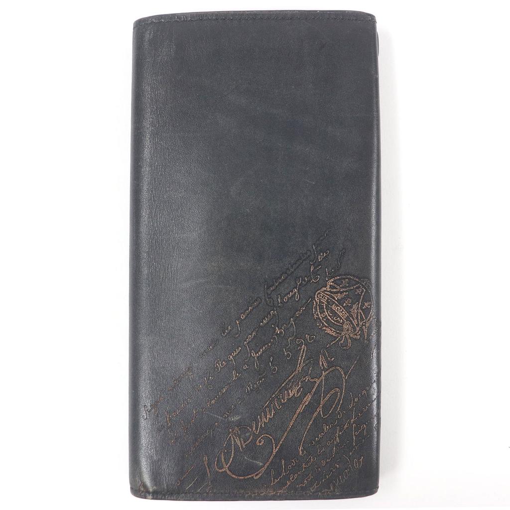Very Good BERLUTI Purse Espace Calligraphy Scritto Long Wallet Billfold Black Leather Mens Used