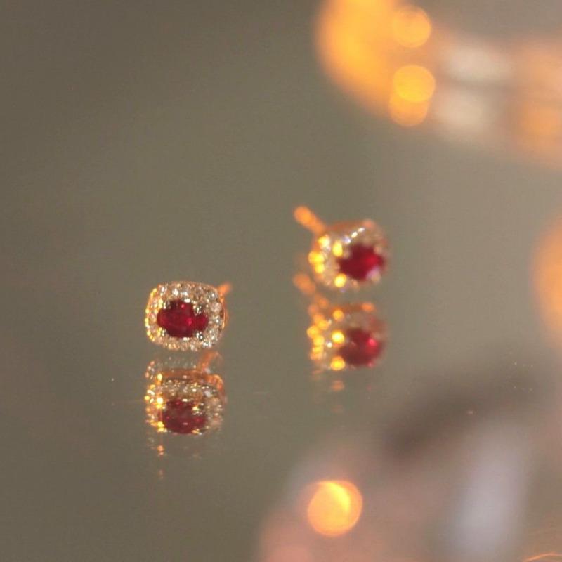 Shining Inlaid Red Gemstone Crystal Square Earrings For Women New In Exquisite Stud Earings Fashion Party Jewelry