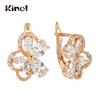 New Rose Gold Women Earrings Glisten Natural Black Zircon Crystal Flower Earrings High Quality Daily Fine Jewelry