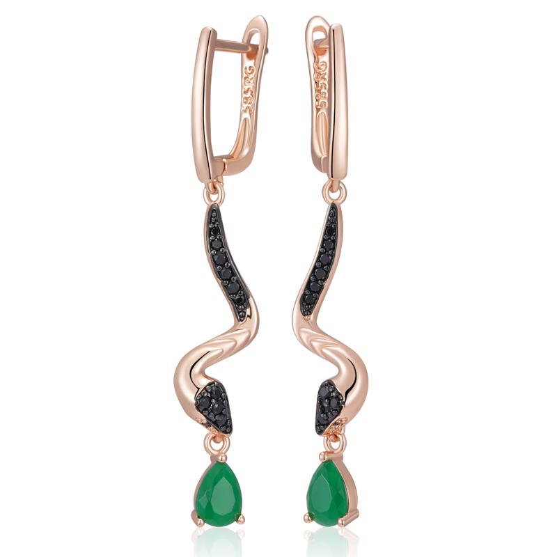 Green Natural Zircon Snake Drop Earrings For Women Rose Gold And Black Plating Vintage Animal Daily Punk Jewelry