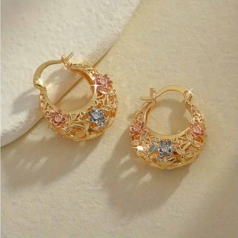 1Pair Elegant Retro Carved Hollow Hoop Earrings, Exquisite Accessories For Women, Perfect Jewelry For Holiday Weddings