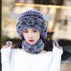 Rex Rabbit Hair Hat Scarf Two-piece Set Women's Winter In The Elderly Mother Grandma Winter Fur Scarf Cover