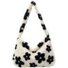 Women Bag Autumn Winter Flower Printed Underarm Bag Fluffy Tote Bag Plush Soft Handbags Ladies Large Capacity Furry Shoulder Bag