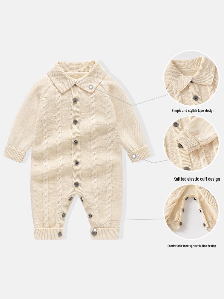 This cozy newborn romper is designed for the cooler months of autumn and winter, providing comfort and warmth for your little one. Made from soft, high-quality cotton, it ensures a gentle touch on delicate skin. The romper features long sleeves, offering full coverage to keep your baby snug. Its stylish European and American design makes it an ideal outfit for a first birthday celebration or any special occasion. The romper combines both fashion and practicality, making it a must-have addition to your baby's wardrobe.