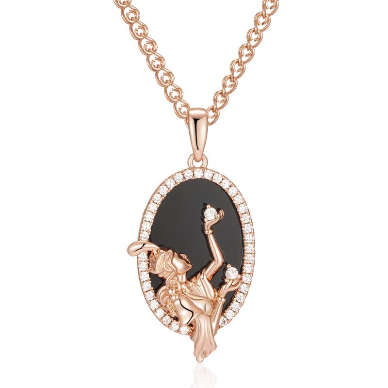Big Oval Black Stone Pendant Necklace Women Fashion Rose Gold Color Accessories High Quality Daily Fine Jewelry