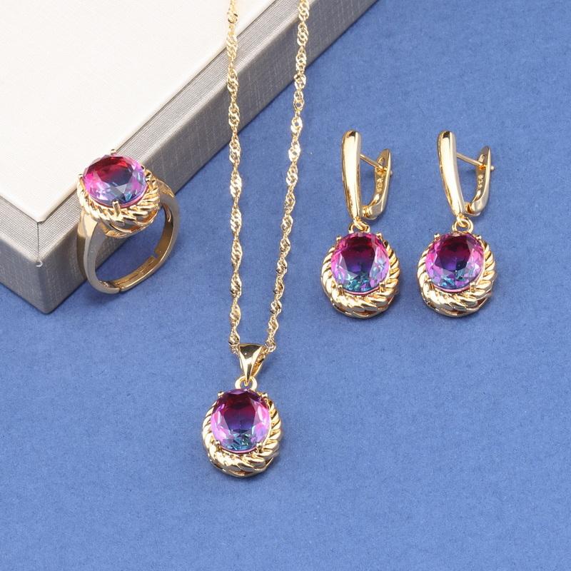 Romantic Wedding Fashion Women Accessories Necklace And Earrings Ring Colorful Zircon Sets Gold Plated Jewelry For You Gift