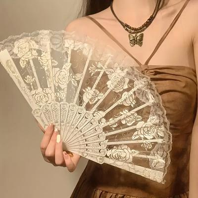 Lace Rose Fan Women Summer Folding Fan Dance Special Ancient Folding Handheld Photo Prop Holiday Birthday Gift