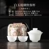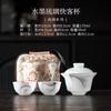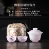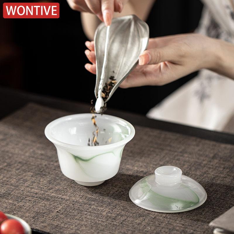 Ink Wash Glass Azure Stone Gaiwan Vintage Three Piece Non Hot Tea Tureen Household Tea Brewing Cover Bowl Drinkware Craft