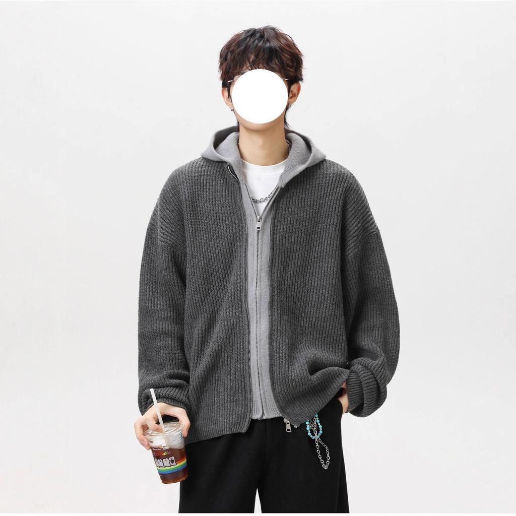 New Lazy Wind Fake Two-piece Cardigan Hooded Sweater Men's Autumn and Winter New Retro Trendy Brand Knitted Sweater Jacket Top