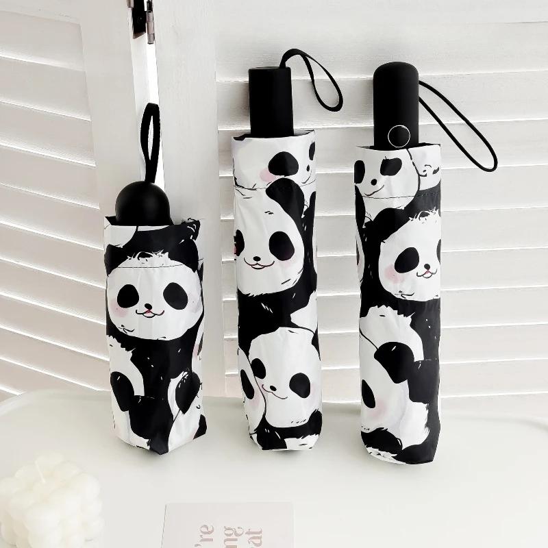 Cute Panda Travel Umbrella Windproof Compact Folding Automatic Open/Close Sun Rain Collapsible Auto Portable Umbrella for Kids