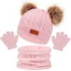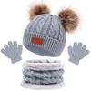 Winter Children's Scarf Hat Three-Piece Set with Pom-Pom Baby Infant Knitted Hat Warm Wool Thickened