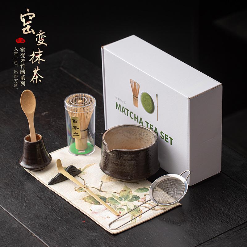 Ancient Pottery Bamboo Rhythm Tea Set Complete Set Retro Tea Brush Japanese Matcha Set Kit Green Tea- Powder Tea Ordering Tools