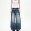 Kisko American Retro Washed Lightning Pattern Studded Straight-Leg Jeans Unisex Niche Design Loose Pants