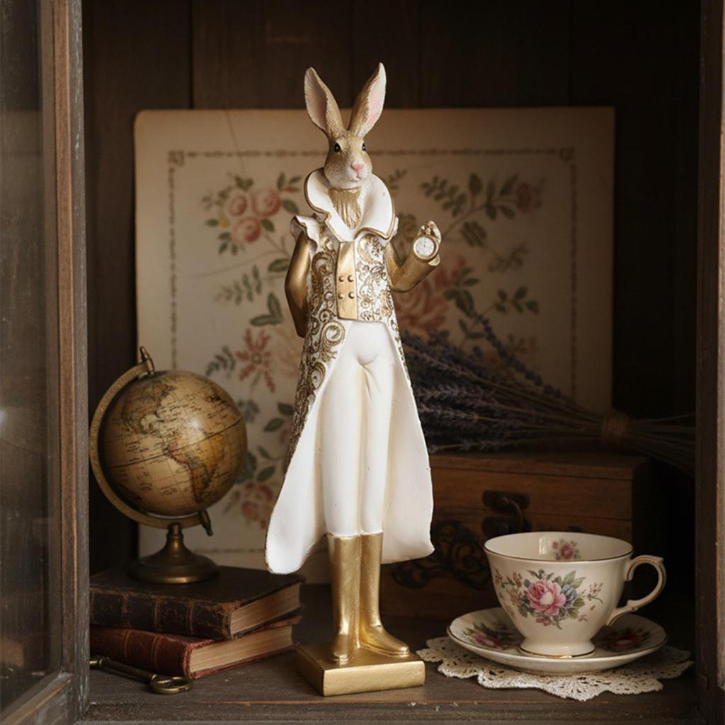 Rabbit Sculpture Animal Bunny Figurine Resin Statue Table Ornament with Smooth Edge