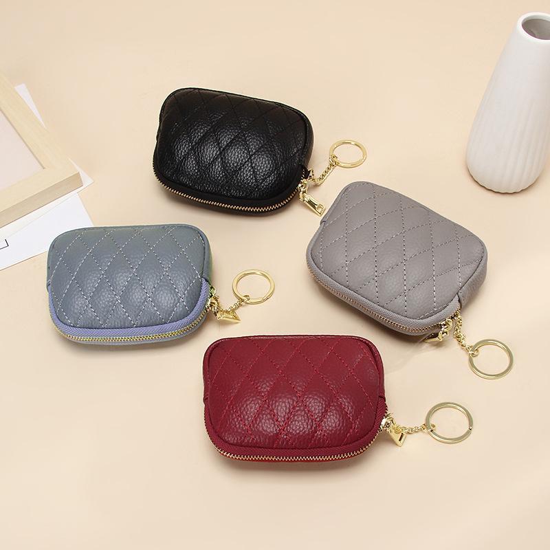 Genuine Leather Diamond Pattern Coin Purse & Keychain Wallet
