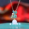 New Porcelain Inlaid Hetian White Jade Pearl Flower Enamel Porcelain Necklace Earrings Palace Style Elegant Ladies Jewelry