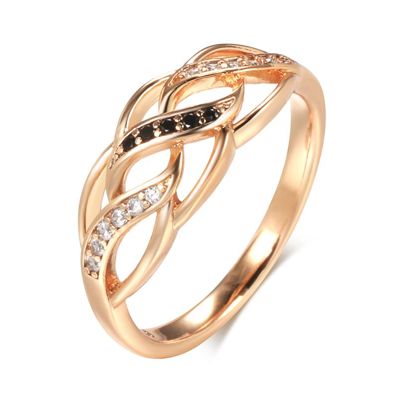 New Rose Gold Boho Ring For Women Hollow Flower Natural Black Zircon Ring Vintage Bride Wedding Fine Jewelry