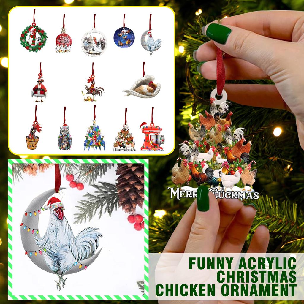 Christmas Scarf Chicken Holiday Decoration, Christmas Outdoor Decorations Wood Christmas Ornaments