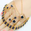 Geometric Blue Stones Gold Plated Jewelry Sets For Women Earrings Necklace Pendant Ring Bracelet Wedding Birthday Gift