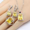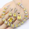 Geometric Yellow Cubic Zircnoia Color Jewelry Sets For Women Bracelet Earrings Necklace Pendant Rings Gift Box